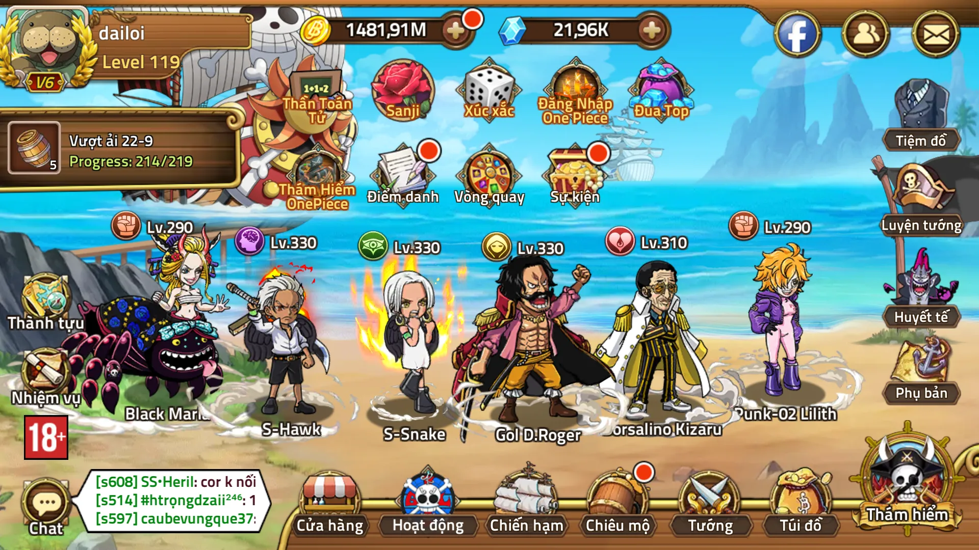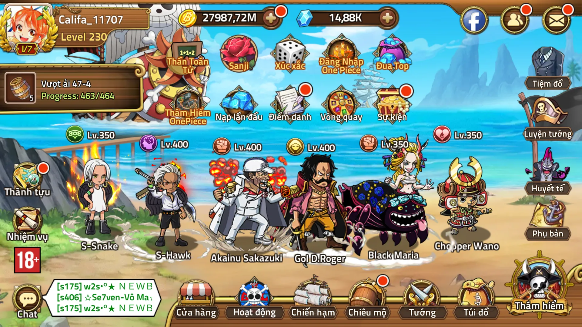 Tài nguyên:dư 7k xu, gần 300k kc, 5k cốc