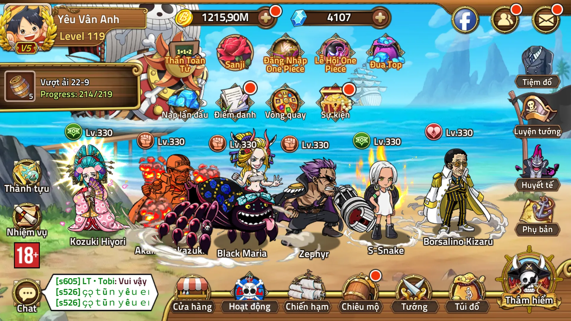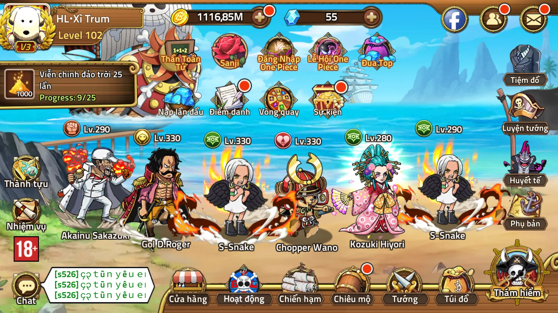Tướng:Full meta, Roger e5 + Luffy e5