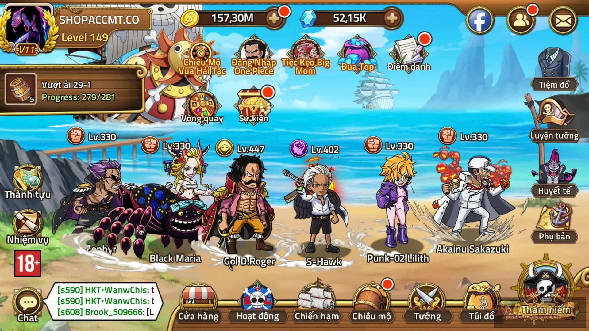 Tướng:Full limited, full tướng siêu , nami robin gần e5